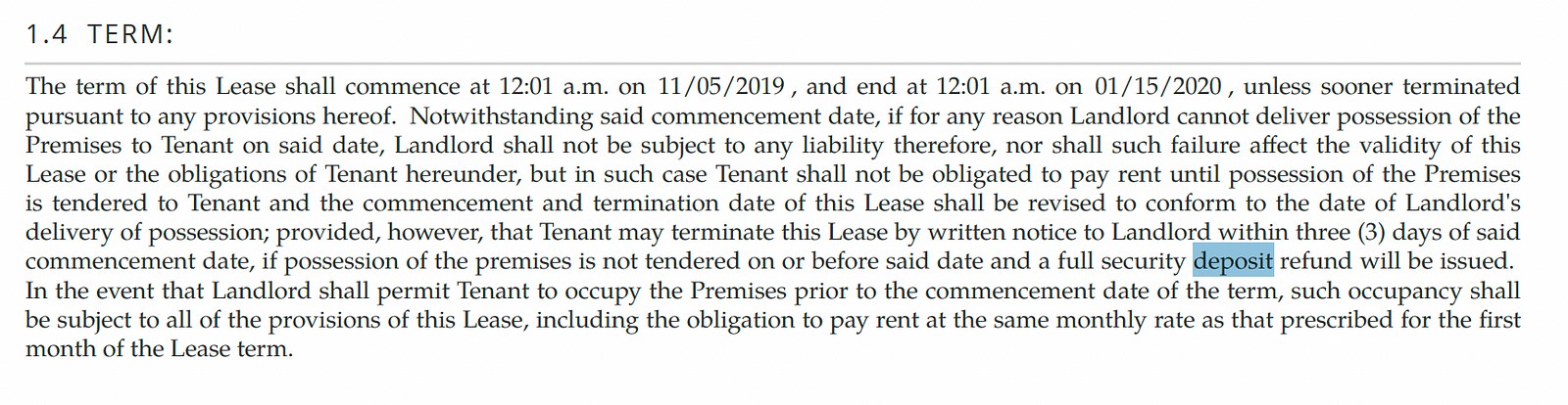Cracks start to form when we ask more nuanced questions. If I ask, “At what point can you use up my security deposit? What’s the process that lets you spend my deposit money?” the top results don’t actually spell it out.
